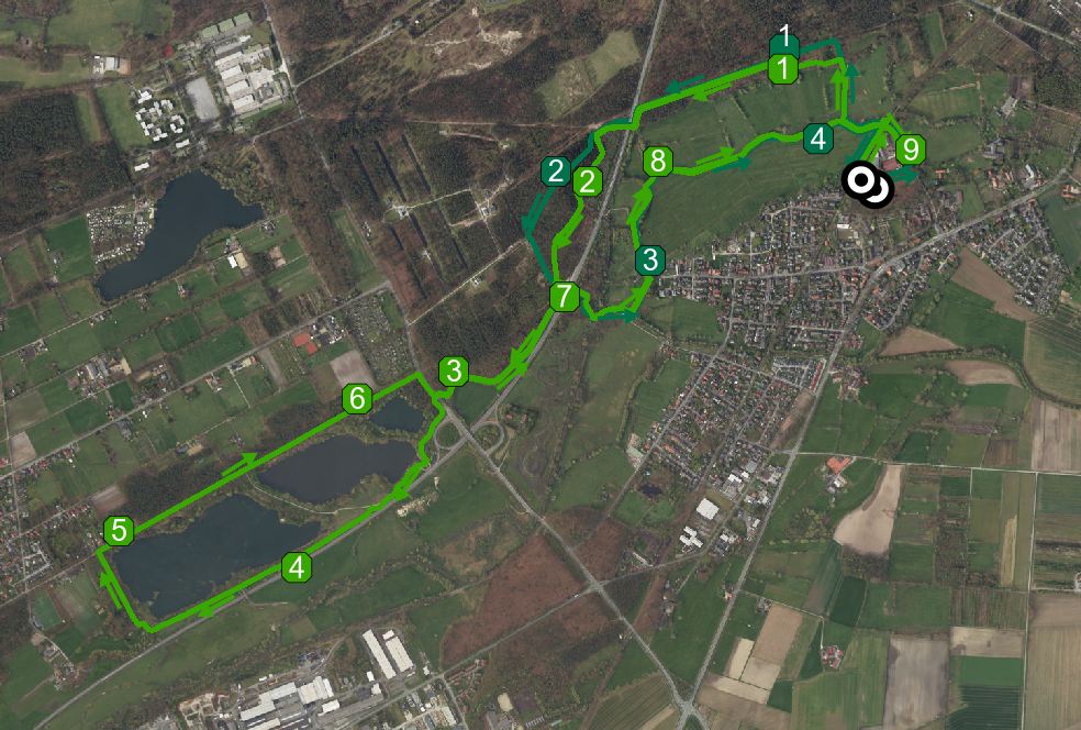 Foto: Screenshot der Laufstrecke Marienloh und Tallesee mit Kilometrierung und alternativen Strecken